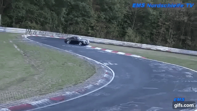 Khi đang trong các vòng chạy tại đường đua "Địa ngục xanh", người điều khiển chiếc Porsche 911 bỗng dưng bị mất kiểm soát xe ở một khúc cua. Sau đó, chiếc xe thể thao Đức chồm lên và leo qua gờ chắn bên ngoài đường đua với một bãi cỏ.