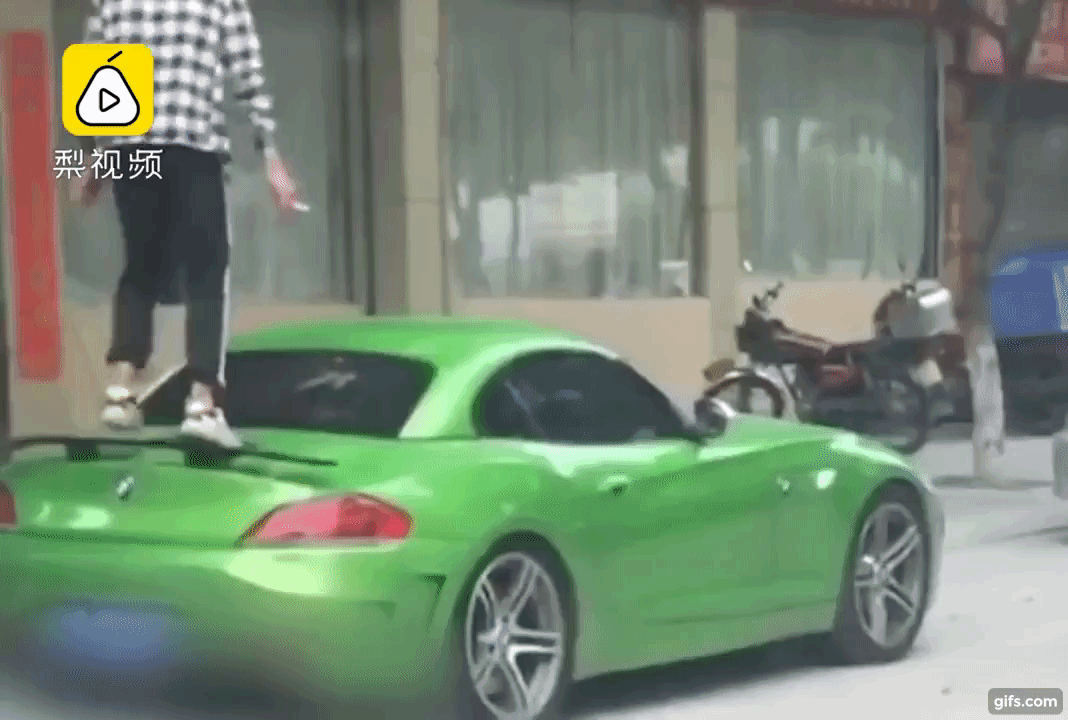 Chỉ vì đi bộ đụng trúng chiếc xe thể thao mui trần màu xanh lá cây BMW Z4 độ đang đỗ bên đường, người đàn ông say rượu đã ngứa mắt và đập phá chiếc xe này không thương tiếc. Ban đầu, anh ta ném 1 vật gì đó vào bên hông chiếc xe BMW Z4.